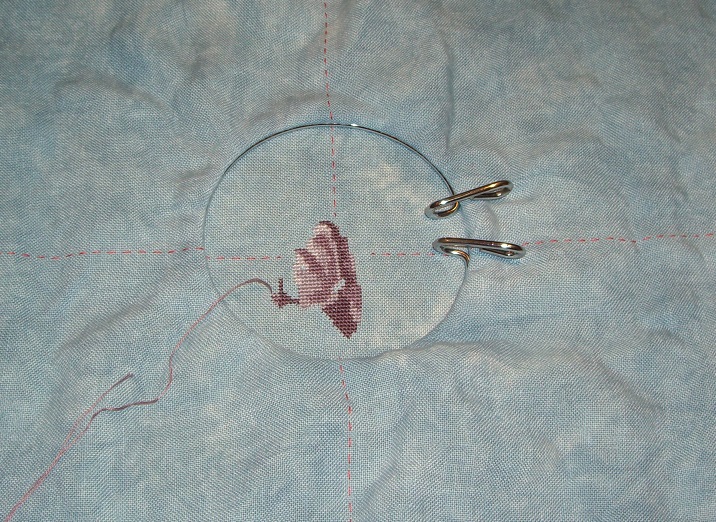 I had a question asked about my spring hoops and if the stitches get ruined by using them. I'd have to say that as far as I'm concerned the stitches are fine after spending some time under the hoop. They do get a bit squished, but they spring back to life after a pressing. I don't like to use them when doing beading, though. I have to be extra careful about placing the hoop around the beads because they can get caught in the hoop and that will distort the stitching. But otherwise a bit of pressing and everything comes out just fine.