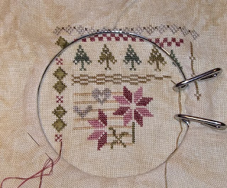 A bit of stitching and I'd finished half of the upper design with the poinsettias.