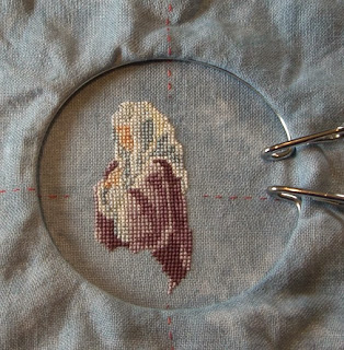 Sunday has arrived and I put some more time into O Holy Night. I'm still plugging along at Mary's shoulder, but I'm quite please with the progress so far, given how little time I do stitch on it. I am stitching this on 28 count Dwarf Blue by Picture This Plus. The faded grey-blue feel of the fabric is thus far working well with the muted tones of the flosses.